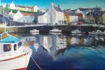 2017Schots dorp aan het water gehuld in zacht zonlicht.